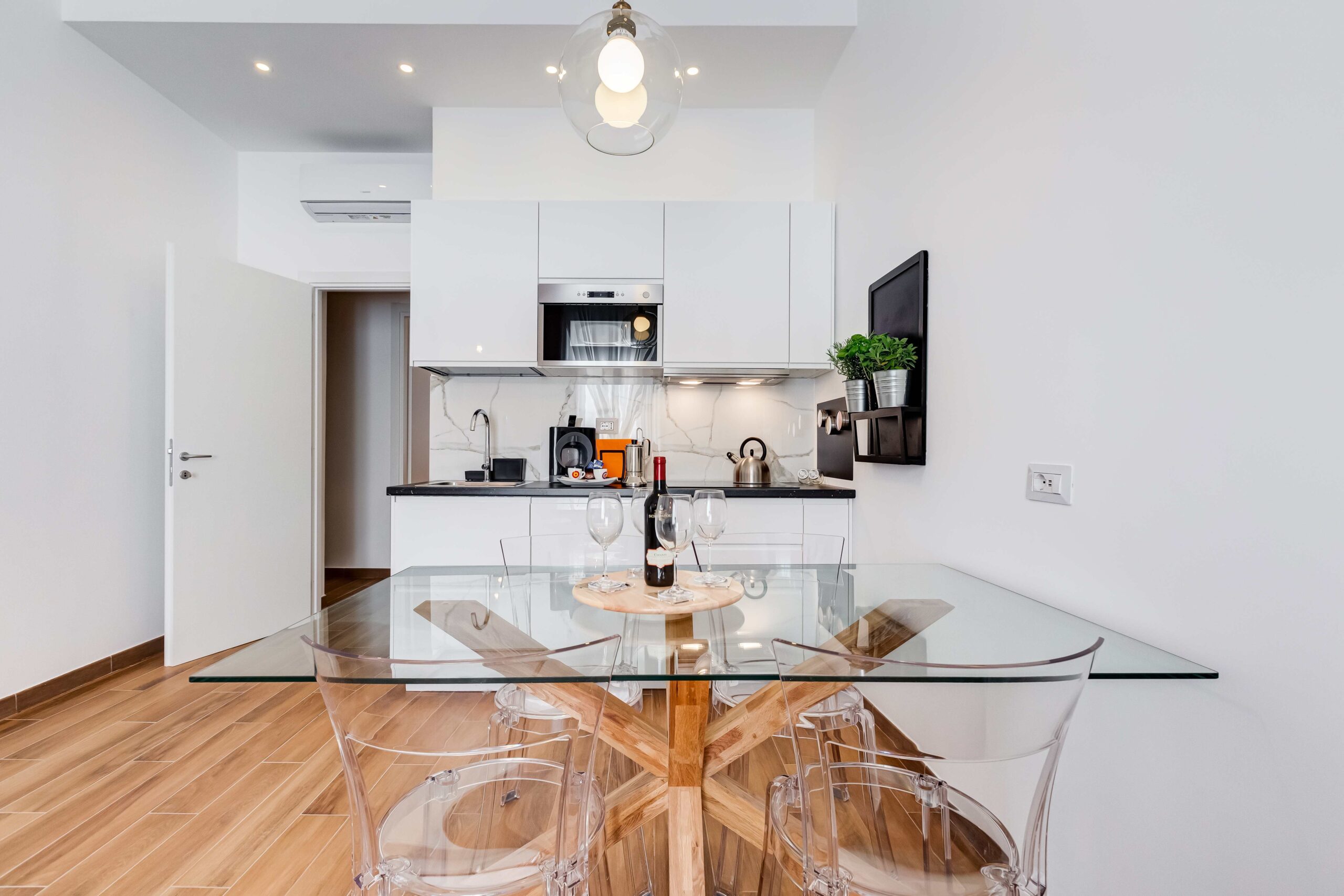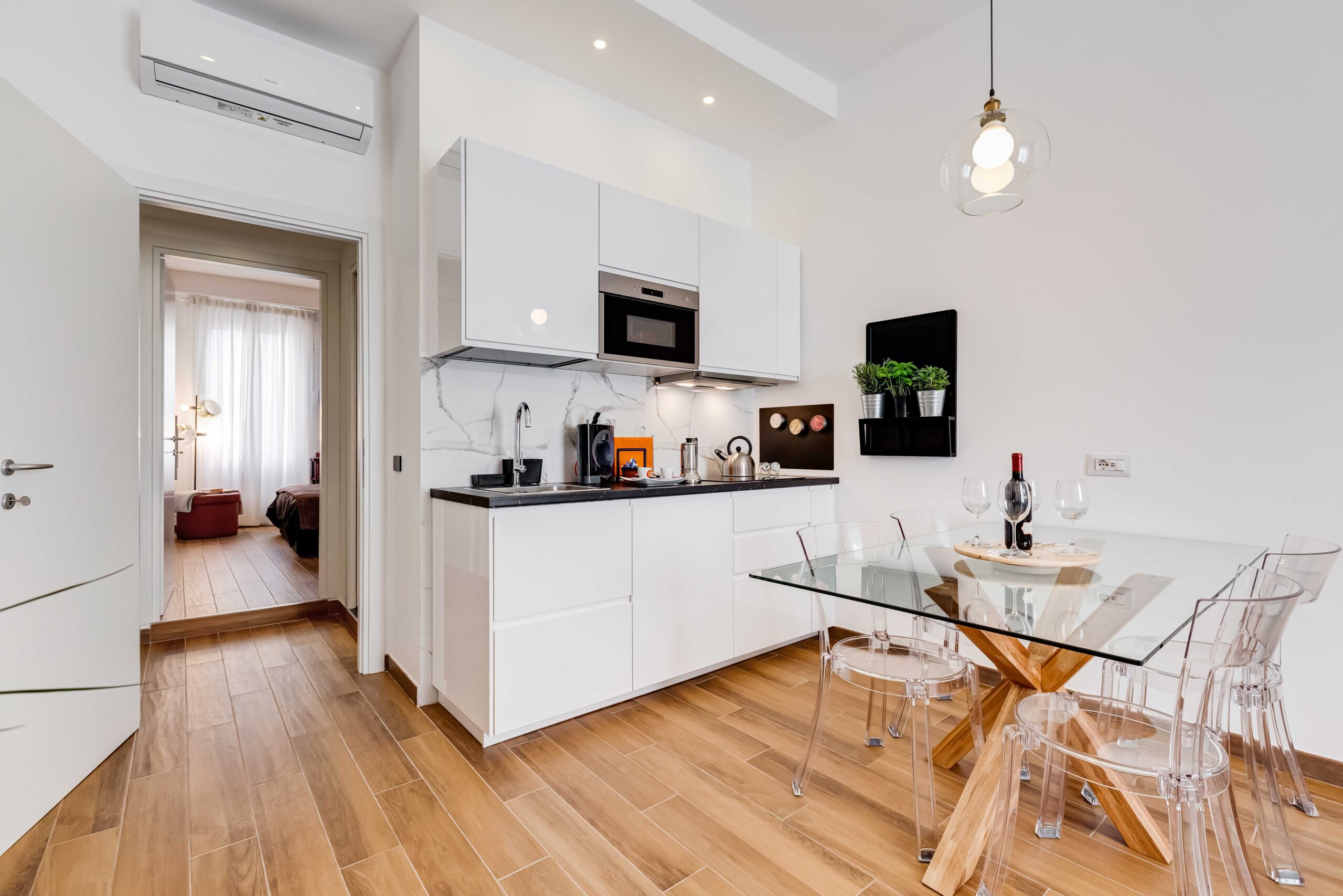 Le pareti insonorizzate garantiscono la massima tranquillità, permettendovi di godere dell'eleganza di una suite combinata con la riservatezza di una casa privata. Il wifi gratuito, il riscaldamento, l'aria condizionata e una TV da 42 pollici con Netflix e Prime Video arricchiscono ulteriormente la vostra esperienza.
