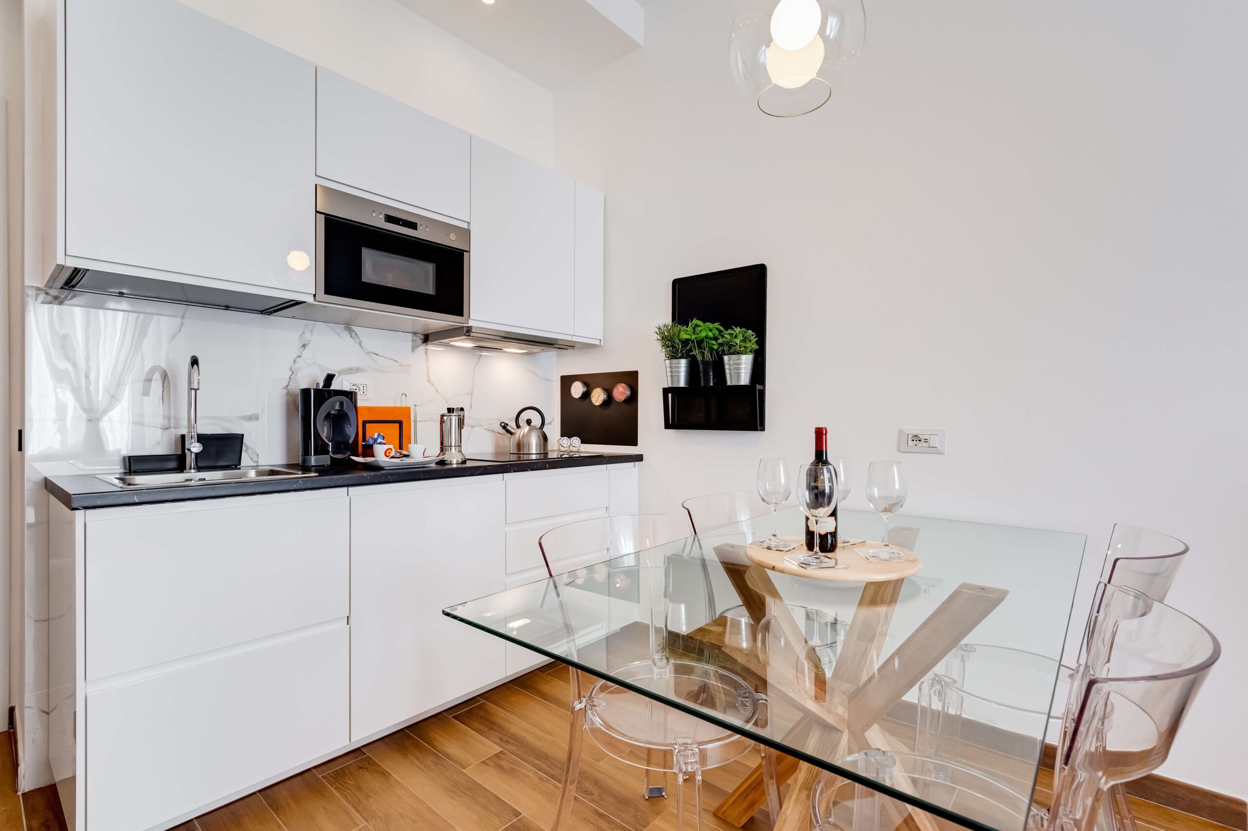 Lo spazio è un invito al relax e alla convivialità. Un grande soggiorno accoglie i vostri momenti di svago, mentre la camera da letto matrimoniale, equipaggiata con un comodo materasso in memory foam, promette notti riposanti. La cucina è completamente attrezzata, perfetta per dare sfogo alle vostre doti culinarie. E per completare l'esperienza, un bagno elegante tutto in marmo, dotato di una spaziosa doccia, vi avvolgerà in un'atmosfera di lusso.