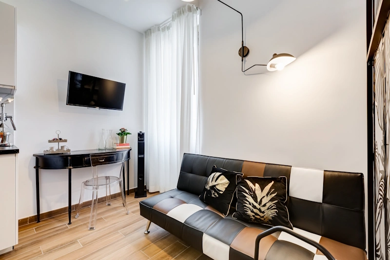 Con pareti insonorizzate e un arredo moderno, questo monolocale "open space" rappresenta l’eleganza di una suite unita alla riservatezza di una casa privata. A soli 15 minuti a piedi dal Colosseo e vicinissimo alla metro San Giovanni, è la base perfetta per vivere Roma in tutto il suo splendore. Prenota ora il tuo soggiorno indimenticabile!