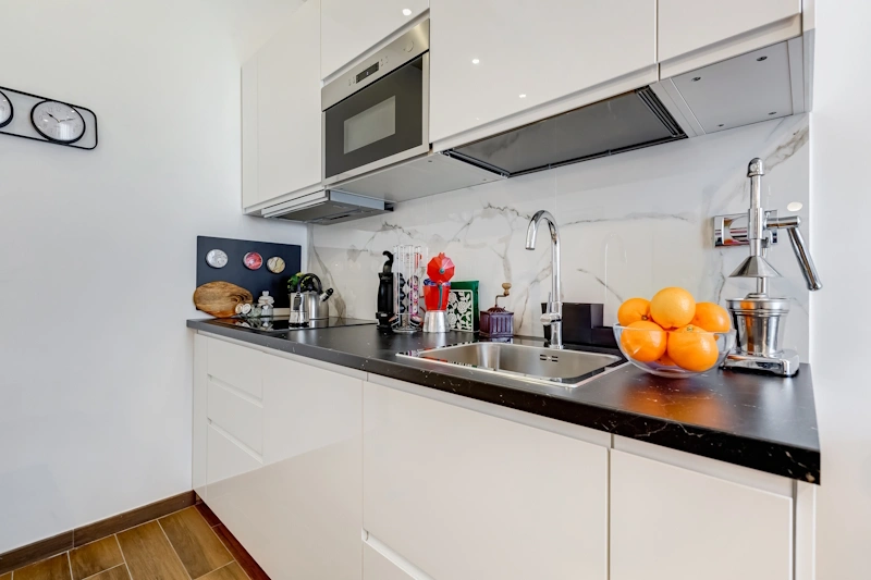 Una volta varcata la soglia, verrai accolto da un luminoso soggiorno, dove potrai rilassarti dopo una giornata di esplorazioni. La zona notte, separata ma aperta, vanta un letto matrimoniale con un materasso in memory foam, studiato per garantire il massimo relax. La cucina, completamente attrezzata, invita a sperimentare i sapori locali, mentre il bagno, elegante e funzionale, offre doccia, lavabo e bidet, per ogni tua esigenza.